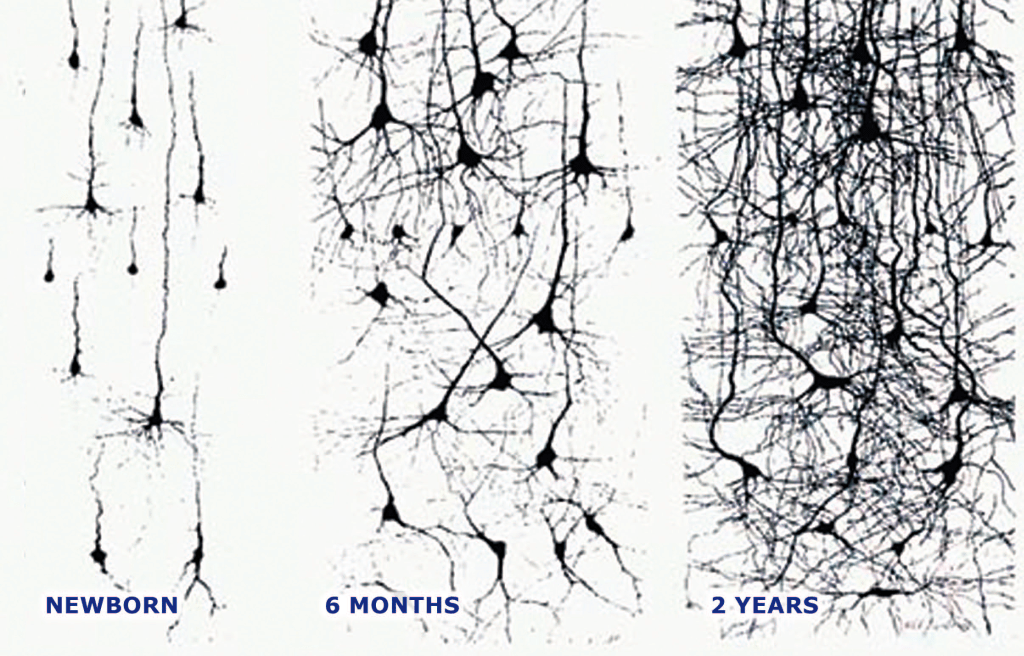 In the first few years of life, 95 percent of brain architecture is built. During this time, children’s experiences produce 1 million neural connections every second! These connections are the bricks and mortar of brain architecture. They are what make up the foundation for all learning and living that is to come.